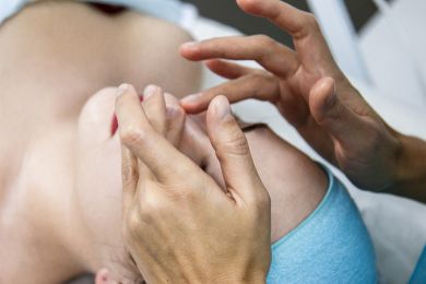 Работать по методике шиацу с перкуссией по поверхности кожи, использовать легкие поглаживания и достигать максимального эффекта от массажа.